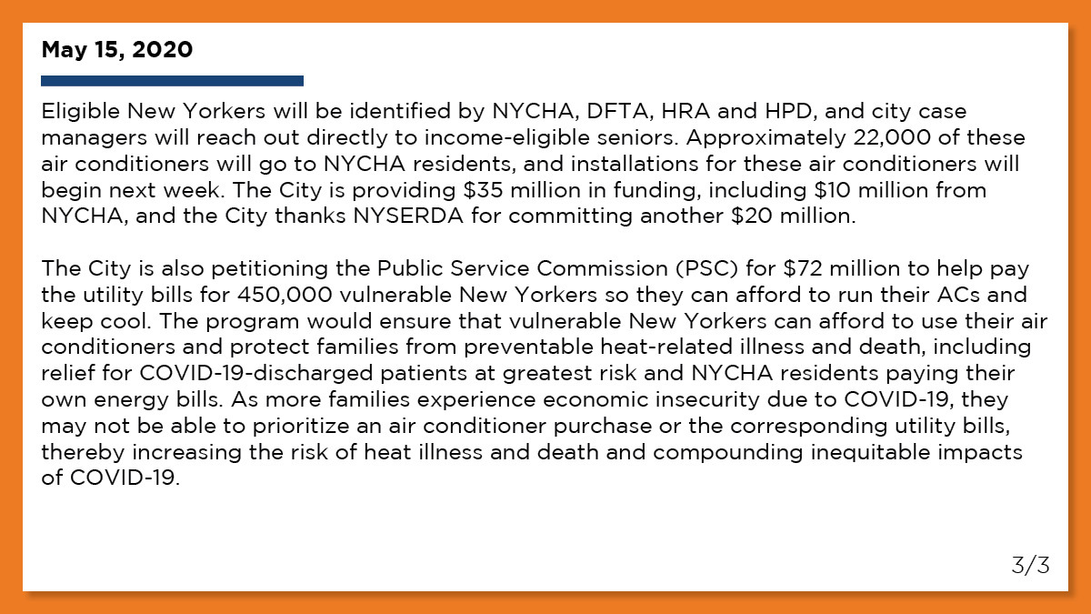 City Of New York On Twitter We Re Getting Free Air Conditioners To All Low Income Seniors And 22 000 Air Conditioners To Nycha Residents We Will Do Everything We Can To Keep Our Most
