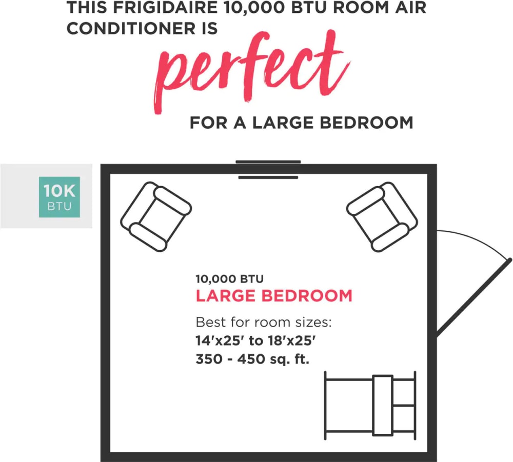 Frigidaire 10000 BTU Window-Mounted Slider Casement Air Conditioner Model FFRS1022RE. 5 out of 5 Customer Rating. Frigidaires 10000 BTU 115V slidercasement room air conditioner is the perfect solution for cooling a room up to 450 square feet.